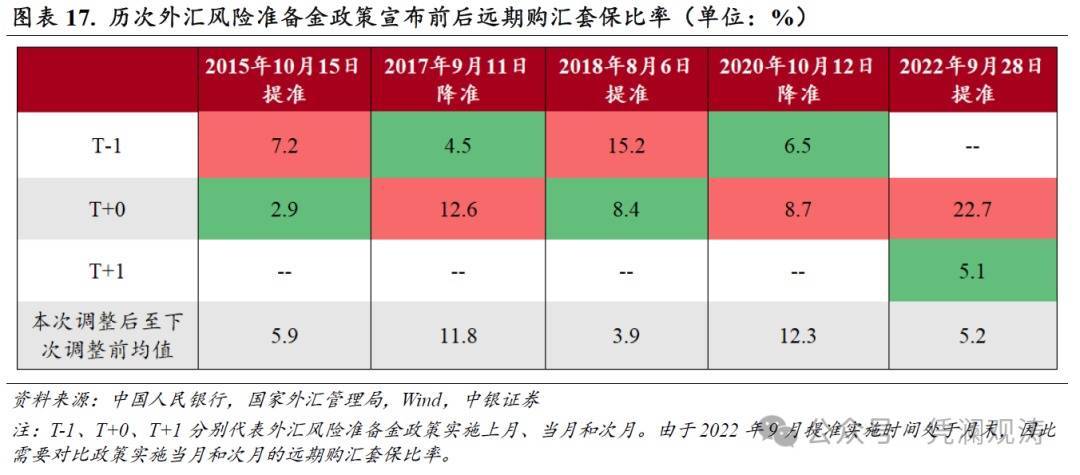 外汇风险准备金计谋的本色影响是指计谋对境表里汇供求关连的影响。上调远期售汇业务的外汇风险准备金率,卓越于加多企业远期购汇本钱,有助于减少远期购汇需求、改善境表里汇供求关连,反之则会加多远期购汇需求。在历次“提准”(“降准”)当月或次月,远期购汇对冲比率均有所回落(回升)。而且,在外汇风险准备金率为20%的三个阶段,远期购汇对冲比率均值差异为5.9%、3.9%和5.2%,显赫低于外汇风险准备金率为0的两个阶段均值11.8%和12.3%,标明外汇风险准备金计谋诊治对远期购汇意愿的影响立竿见影,且影响较为握久(见图表17)。